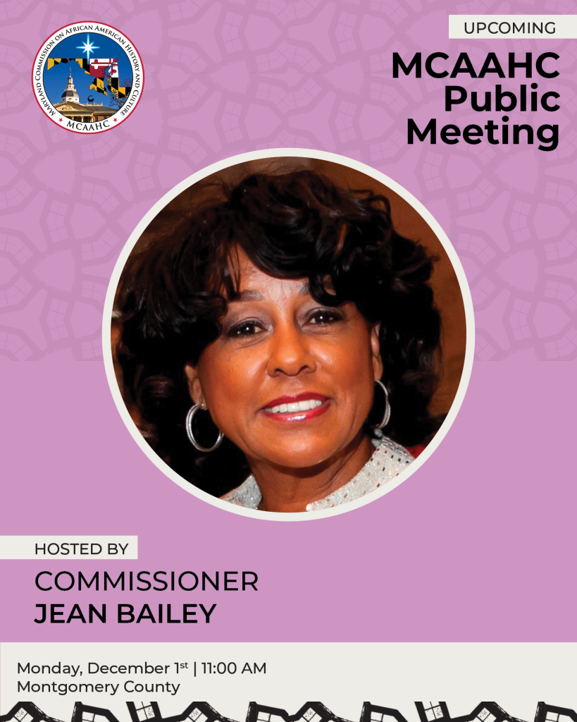 The Maryland Commission on African American History and Culture is committed to discovering, documenting, preserving, collecting, and promoting Maryland’s African American heritage.