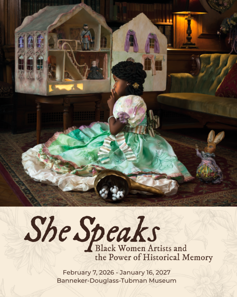 The Banneker-Douglass-Tubman Museum proudly announces its newest exhibition, She Speaks: Black Women Artists and the Power of Historical Memory–a visionary presentation that examines the 250-year history of the United States of America through a Black Feminist lens.